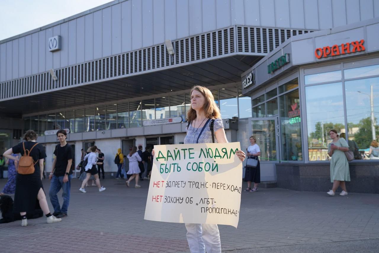 В июне этого года Елена вышла на пикет против нового законопроекта о запрете гендерного перехода и операций по смене пола.