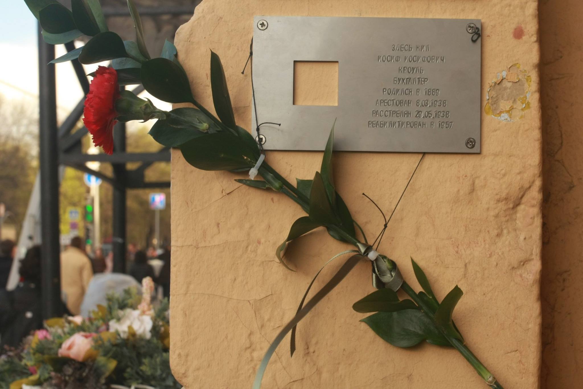 На табличках упоминались инженер и директор "Севкабеля" Ефим Коварский, расстрелянный в 1937 году, и сотрудники телефонного завода "Красная заря", обвиненные в "участии в контрреволюционной троцкистской организации, производившей подрывную деятельность на заводе". Среди них — глава бюро механизации завода Фридрих Шнейдер, начальник технической части Владимир Дмитриев и заведующий производством Иван Сиваченко. Все они были расстреляны.