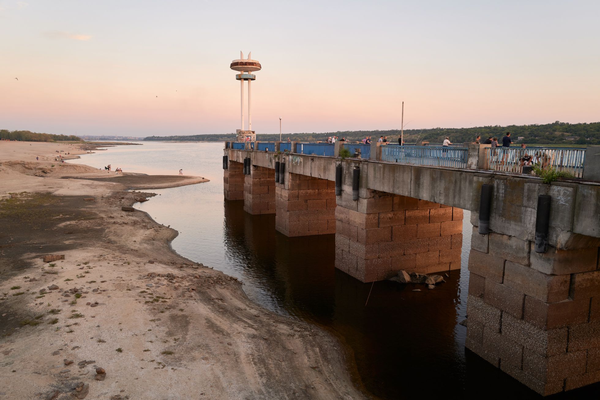 Берег Днепра в Запорожье спустя три месяца после подрыва Каховской ГЭС