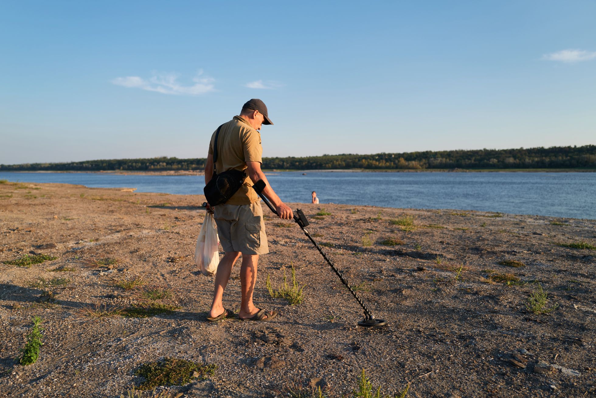 Три месяца после подрыва Каховской ГЭС. Русло обмелевшего Днепра все еще не восстановилось, на его пересохших берегах жители ищут монеты и металлолом