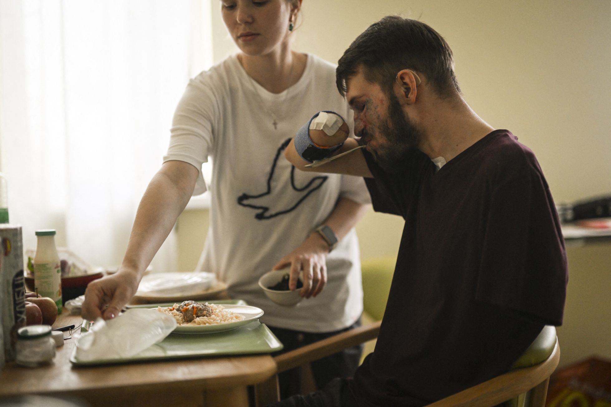 Ercin Erturk / Anadolu Agency / ABACAPRESS / ddp images / Vida Press Украинский военный Андрей Смоленский в больнице. Изначально он не был годен для службы в армии по состоянию здоровья, но сумел добиться разрешения от военкомата и отправился на фронт в начале полномасштабной войны. В мае 2023 года Смоленский попал под обстрел (где именно, не уточняется), потеряв обе руки, а также зрение и частично слухErcin Erturk / Anadolu Agency / ABACAPRESS / ddp images / Vida Press Вместе с Андреем в больнице живет его жена Алина. Она делится историей мужа в соцсетях — рассказывает, как он идет на поправкуErcin Erturk / Anadolu Agency / ABACAPRESS / ddp images / Vida PressErcin Erturk / Anadolu Agency / ABACAPRESS / ddp images / Vida Press