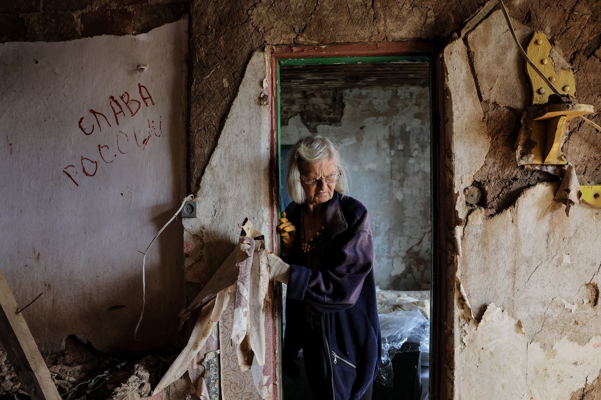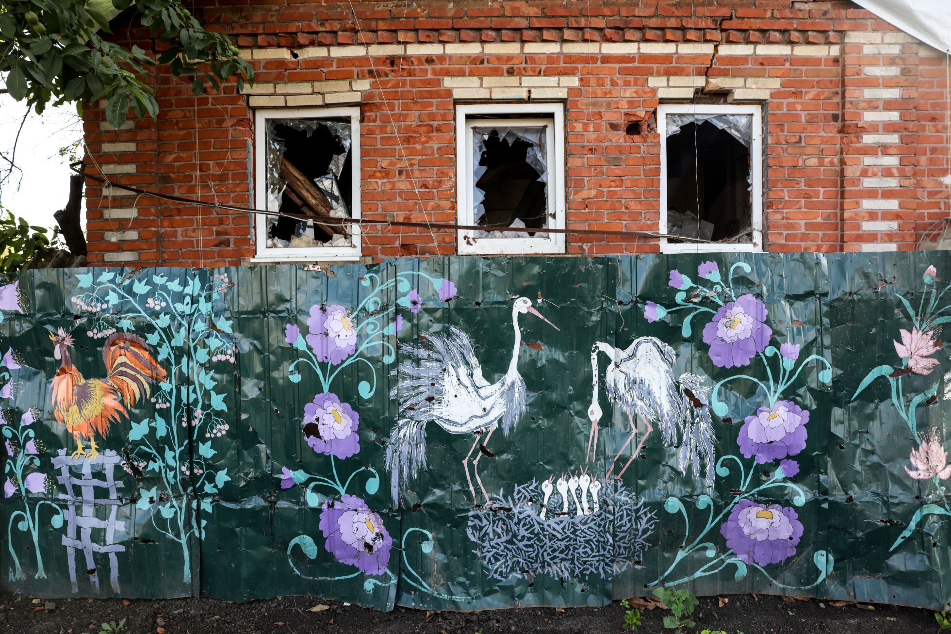 Oleg Petrasyuk / EPA / Scanpix / LETA 60-летняя Ирина — жительница села Долгенькое Харьковской области — после возвращения в свой разрушенный дом. Долгенькое находится примерно в 20 километрах от Изюма — города, который российские войска оккупировали 1 апреля 2022-го. В сентябре того же года ВСУ освободили Изюм — и обнаружили в нем массовое захоронение на 445 могил. Всего за полгода российской оккупации в Изюме погибли около тысячи мирных жителейCathal McNaughton / EPA / Scanpix / LETA Расписанный забор у дома Ирины. Долгенькое было захвачено 11 июня 2022 года — Ирина успела эвакуироваться из села до российского наступления. ВСУ освободили Долгенькое, как и Изюм, в сентябре. Вернувшись (когда именно, не уточняется), Ирина обнаружила свой дом разрушенным, а также нашла тело своего 39-летнего сына Романа среди развалин соседнего домаOleg Petrasyuk / EPA / Scanpix / LETA Ирина плачет у могилы сынаCathal McNaughton / EPA / Scanpix / LETA