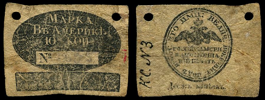 Однако монет в обороте не хватало, и тогда Главное управление компании разрешило выпуск на Аляске специальных денежных знаков. Кабинет министров России этому решению не препятствовал, но формального разрешения не давал. Впрочем, Русско-Американская компания тогда уже была этаким "государством в государстве" и не очень беспокоилась о каких-то там разрешениях. Поэтому она ничтоже сумняшеся начала выпуск своих рублей.