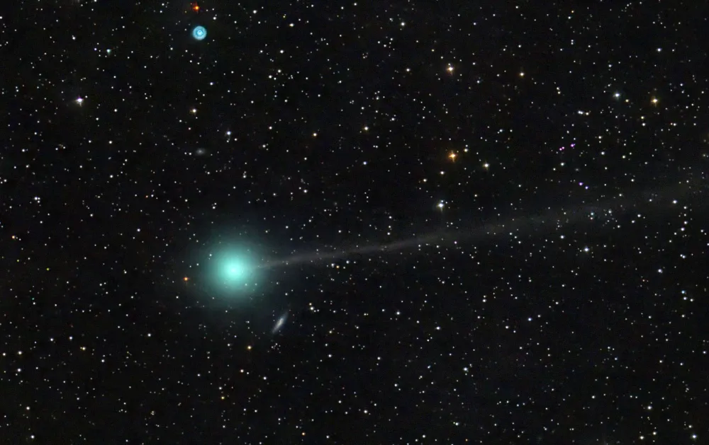 18 сентября 2023 года комета пройдет перигелий своей орбиты на расстоянии 33 млн км от Солнца. Она уже пересекла орбиту Земли, и астрономы наблюдают небольшой хвост (протяженностью всего 8–10 угловых минут), состоящий из выделяющихся из нагретого ядра кометы газов и пыли. Кома кометы светится сине-зеленым из-за выброса двухатомного углерода