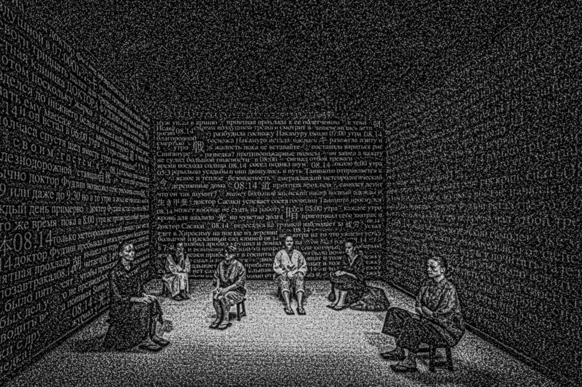 В основе действа — знаменитый репортаж американского журналиста и писателя Джона Херси, он опрашивал переживших катастрофу в Хиросиме, сразу после трагедии. Вернувшись в Америку, написал рассказы шести выживших в Хиросиме: немецкого пастора, овдовевшей швеи, двух врачей, местного священника и молодой женщины, работницы фабрики.
