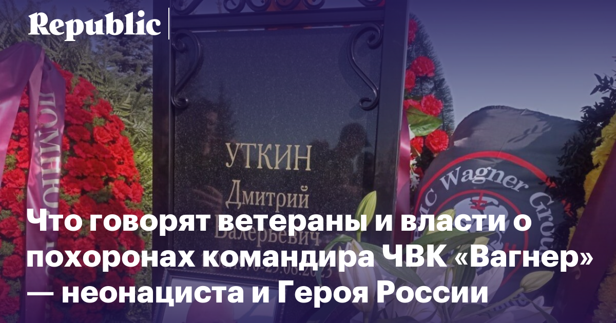 Похороны командира ЧВК «Вагнер» Дмитрия Уткина в Пантеоне защитников Отечества в подмосковных Мытищах — крупнейшем военном мемориальном кладбище страны — вызвали неоднозначную реакцию в обществе. Еще свежи воспоминания о вооруженном мятеже вагнеровцев с походом выходного дня на Москву, участников которого Владимир Путин назвал предателями. Кроме того, Уткина считают сторонником идеологии неонацизма: как утверждают СМИ, у него были татуировки с нацистской символикой, он подписывался рунами «зиг», к основателю ЧВК Евгению Пригожину обращался как к Гитлеру — «Хайль Петрович», и при этом любил рассуждать о пути истинного арийца.