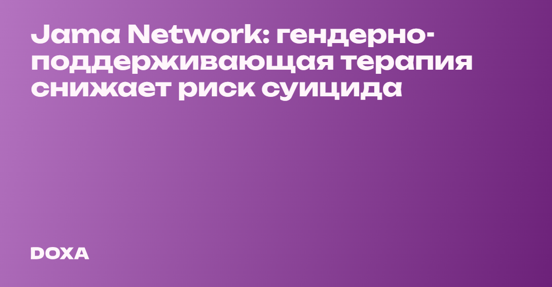 Исследования показывают, что трансгендерные молодые люди, особенно с симптомами гендерной дисфории, в три раза чаще сообщают в опросах о суицидальных мыслях, чем их цисгендерные ровесни_цы. Гендерно-поддерживающая терапия помогает снизить риски суицидов и ментальных расстройств среди несовершеннолетних.