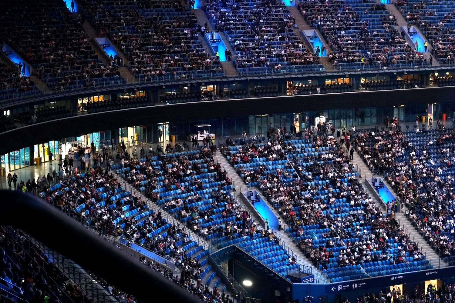Площадка для зрителей делилась на несколько частей: на футбольном поле разместили танцпол и фан-зону, сидячие места были на нижних и на верхних секторах. По пригласительным, которые раздавали муниципалитеты и городская администрация, многих разместили на дальних ложах под куполом стадиона.