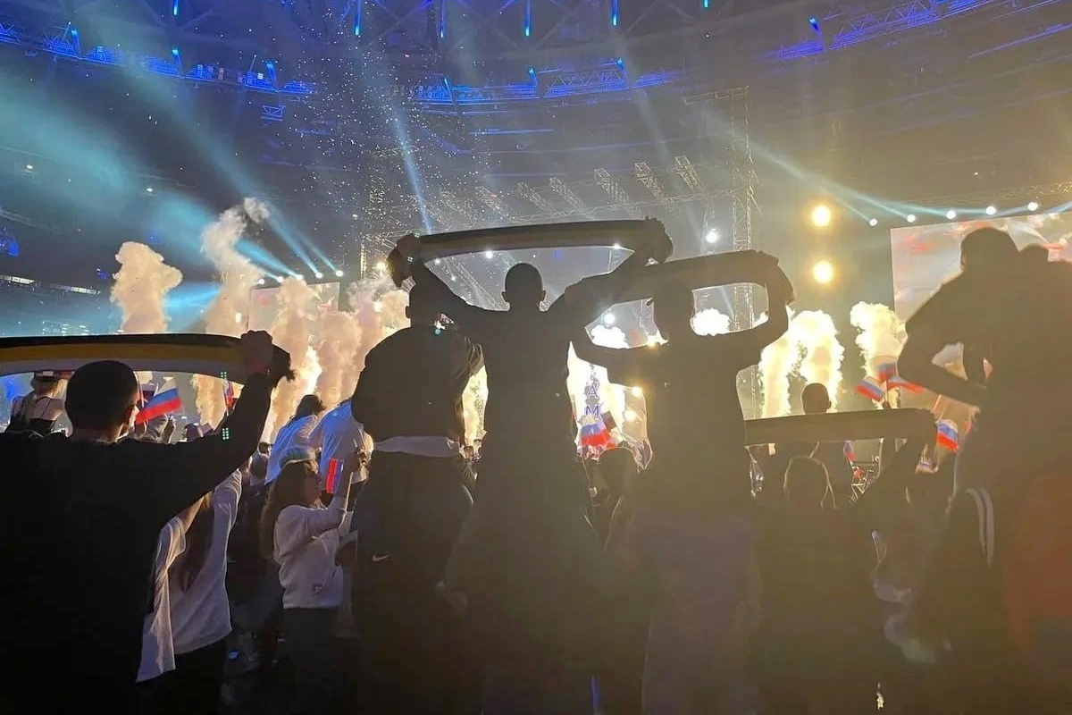 Всем желающим раздавали флажки-триколоры. Кто-то из подростков забирал сразу по десять штук. Параллельно толпу с танцпола запустили в более дорогую фан-зону — чтобы у сцены не было пусто.