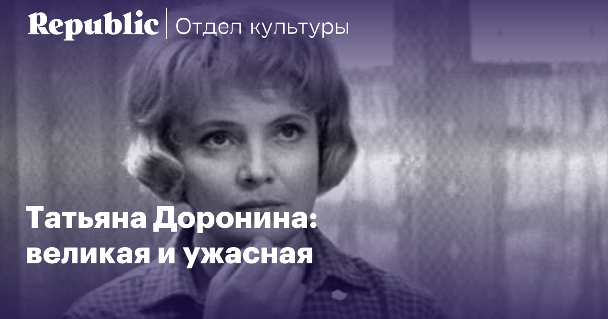 «Любить иных — тяжелый крест…» Любить Доронину всегда было непросто. Это даже не о мужьях или других близких — не нашего ума дело, — быть поклонником Дорониной тоже было делом непростым. Красавица и талантище, она отталкивала стольких же, скольких и намертво притягивала. Ее неординарность резала глаз, как мощный источник света, который одним кажется воплощением счастья и свободы, а другим — источником раздражения. И никто не стоит равнодушно.