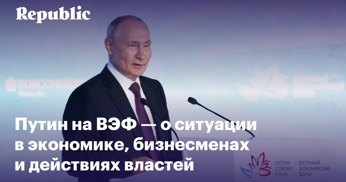 Владимир Путин принял участие в пленарном заседании Восточного экономического форума. Президент РФ высказался на актуальные экономические темы, в том числе о курсе рубля, ключевой ставке и росте цен. Также он прокомментировал антивоенное высказывание одного из основателей «Яндекса» Аркадия Воложа, припомнил уехавшего в Израиль Анатолия Чубайса, а еще сообщил о разработке оружия «на новых физических принципах». При этом Путин отложил разговор о возможном его выдвижении на следующих президентских выборах. Republic приводит главные его заявления.