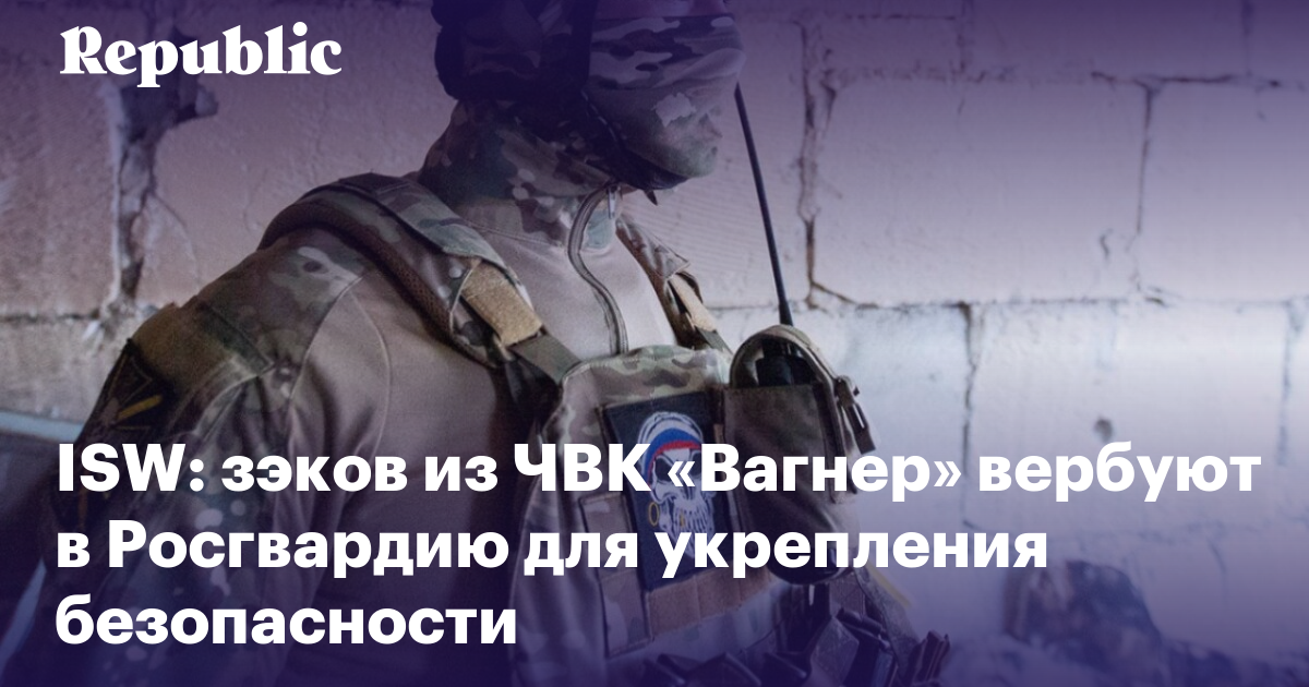 В ежедневном отчете американского Института изучения войны (ISW) аналитики обращают внимание на публикации в российских СМИ о том, что бывших заключенных, воевавших в составе ЧВК «Вагнер», вербуют в российские правоохранительные органы, в частности, в Росгвардию. По мнению экспертов, это делается для большего контроля над бывшими «вагнеровцами», а также для укрепления аппарата внутренней безопасности России.