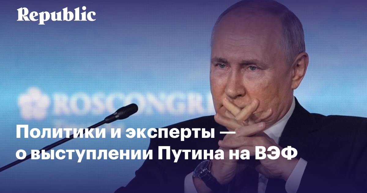 Владимир Путин 12 сентября выступил на пленарном заседании Восточного экономического форума во Владивостоке. Он много говорил об экономике, но больше всего его выступление запомнится высказываниями об Анатолии Чубайсе, Аркадии Воложе, уехавших из страны деятелях культуры, потерях украинской армии в ходе контрнаступления и разработке оружия «на новых физических принципах». При этом Путин отложил разговор о возможном его выдвижении на следующих президентских выборах. Первая реакция политиков, экспертов и журналистов на заявления Путина, — в подборке Republic.