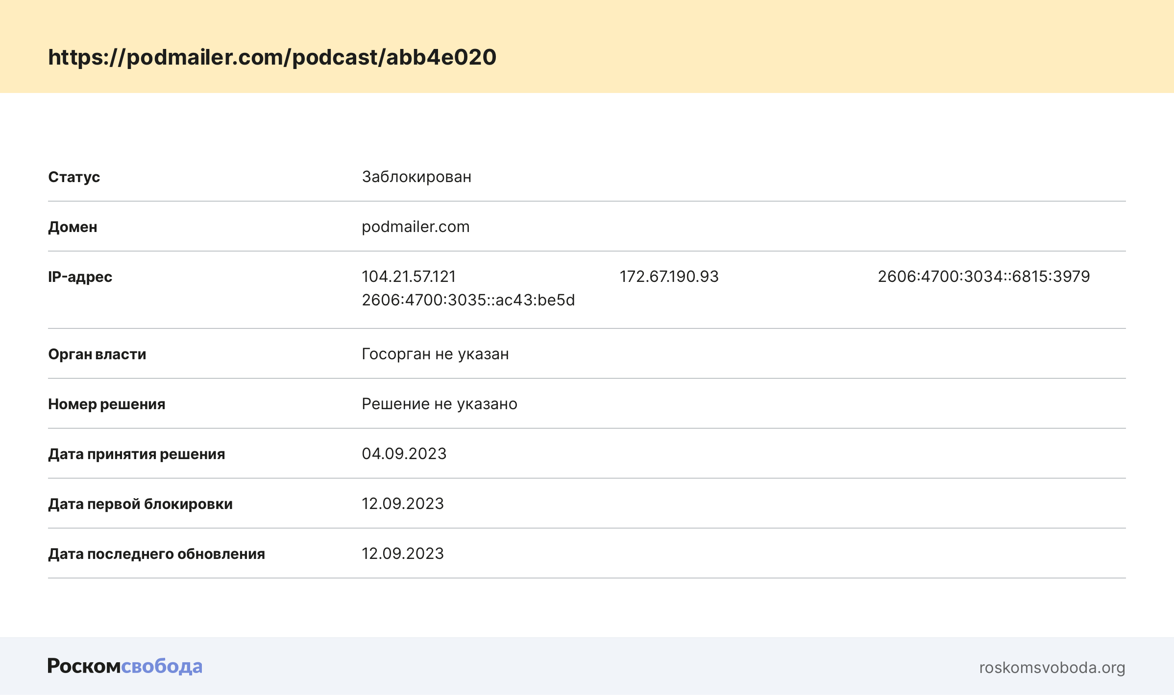 На платформе подкастов Podmailer «неизвестному» российскому госоргану не понравилась страница «Сводки Украины»: