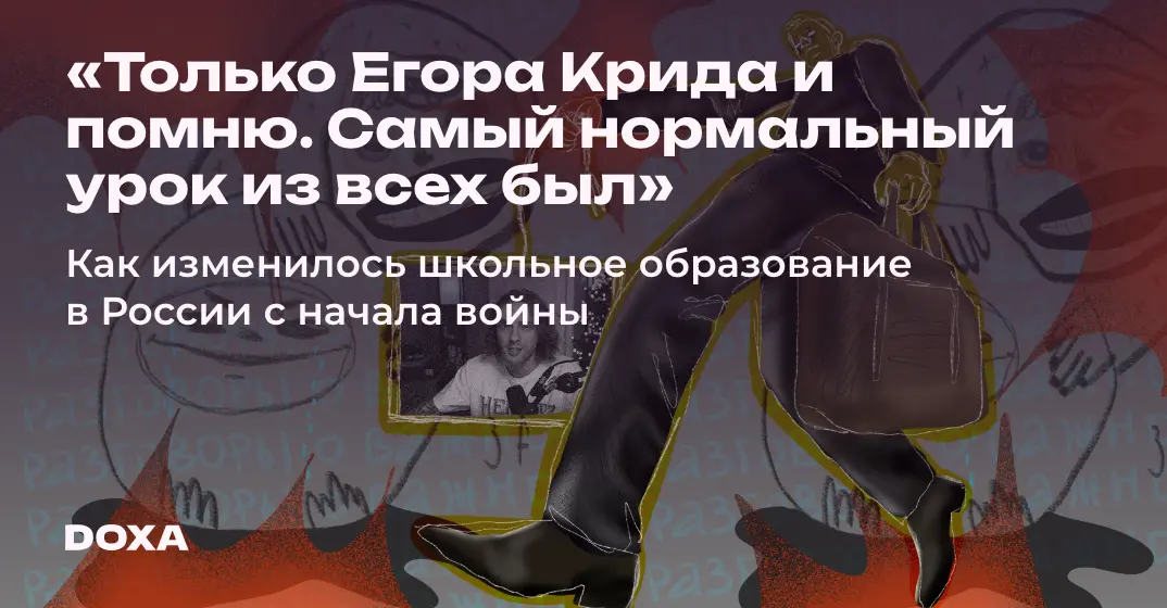 Хотя некоторые житель_ницы России могут жить свою жизнь, не замечая военной пропаганды, от миллионов людей требуют не просто слушать ее, но и активно соглашаться — при этом уклониться от таких обязанностей бывает проблематично. Речь идет о детях, прежде всего — об учащихся российских школ. За полтора года полномасштабной войны милитаризм стал частью школьного образования: к школьни_цам на занятия теперь приходят участники «СВО», а самих учащихся заставляют писать письма на передовую и изготавливать окопные свечи для военных. Все это время DOXA подробно освещала, как фашизм приходил в российские школы. Ниже — обзор, что нам удалось узнать о милитаризации образования.