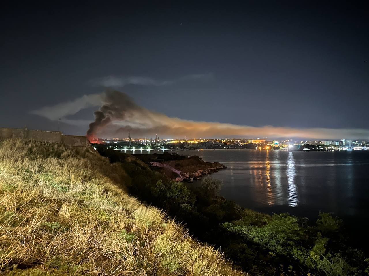 По словам очевидцев, над Севастополем наблюдалось несколько вспышек, в прибрежной зоне в воздухе были сбиты объекты, прогремело около десятка взрывов.