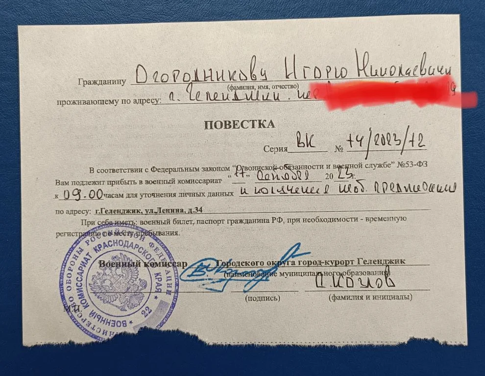 Огородников был наблюдателем на выборах в Геленджике с 8 по 10 сентября. На одном из участков 9 сентября он и один из членов УИК получили повестку в военкомат.