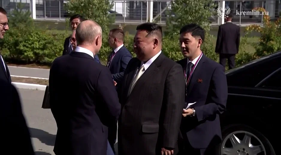 Putin travelled to the cosmodrome from Vladivostok, where he took part in the Eastern Economic Forum on Tuesday, TASS reported. The North Korean leader travelled to the remote cosmodrome on his personal armoured train. The two leaders spoke briefly upon their arrival ahead of formal talks.