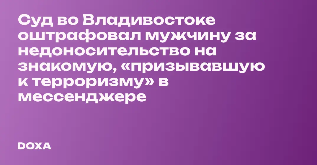 Суд во Владивостоке оштрафовал мужчину за недоносительство на знакомую, «призывавшую к терроризму» в мессенджере