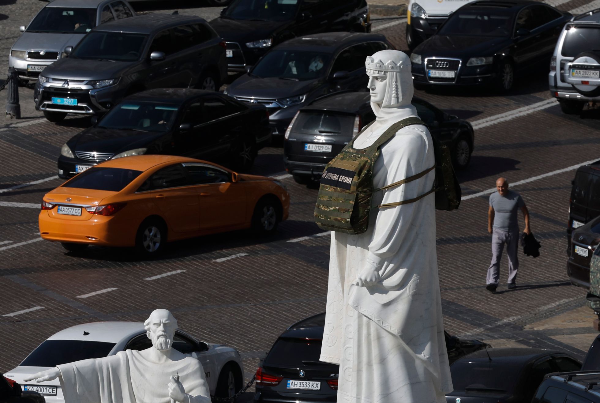 Статуя княгини Ольги в бронежилете в Киеве