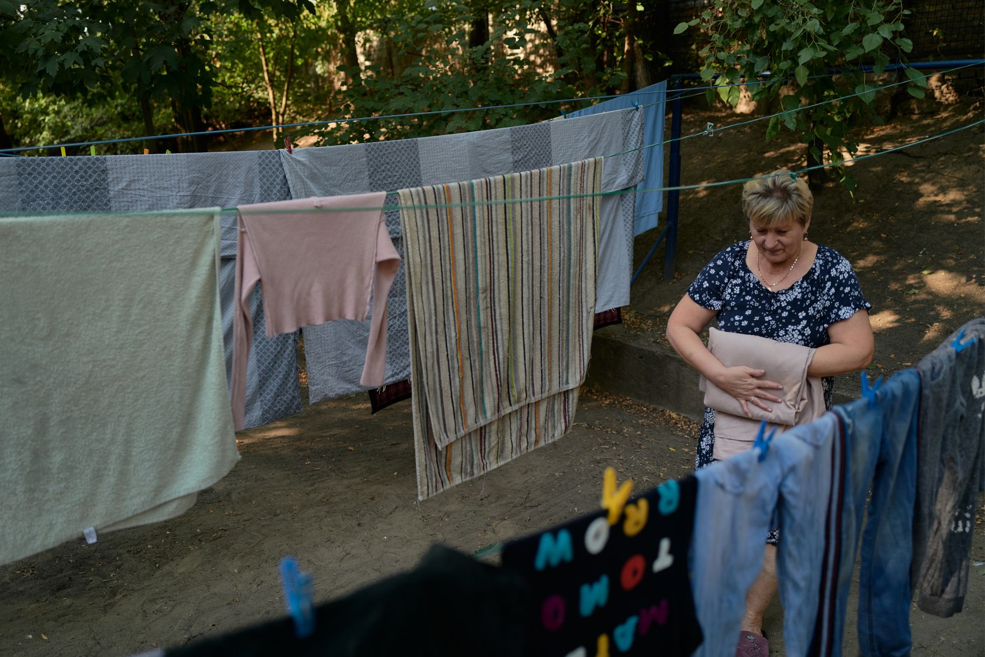 В шелтере в Запорожье живут около 150 беженцев с оккупированных территорий Украины. Посмотрите, как они плетут камуфляжные сети для бойцов ВСУ