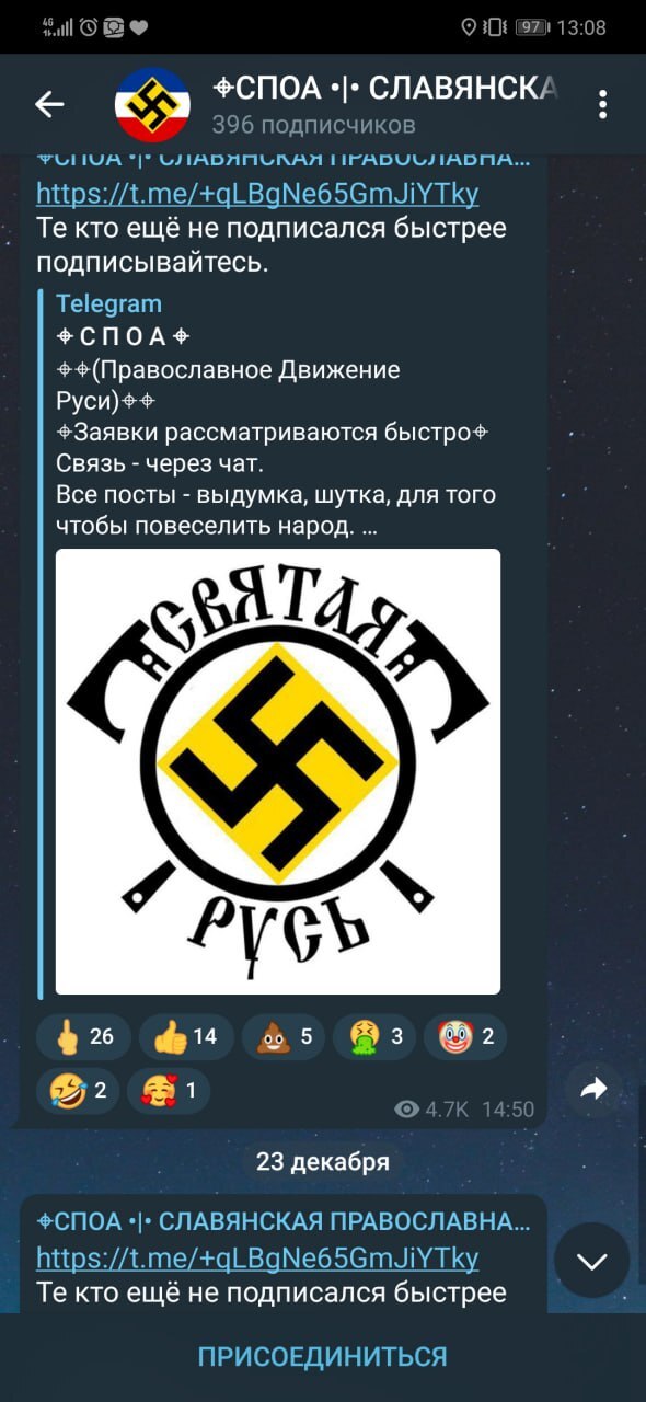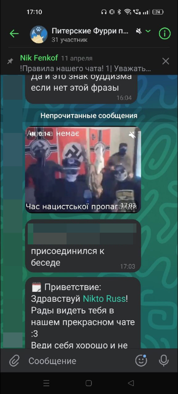По словам Антона, свидетели слышали, как в разговоре с полицейскими нападавший назвал себя неонацистом. В среде фурри считают, что задержанный администрировал телеграм-чат «Славянская православная освободительная армия» (СПОА), в котором одобрительно писали про срыв сходки и называли нападавшего «своим».
