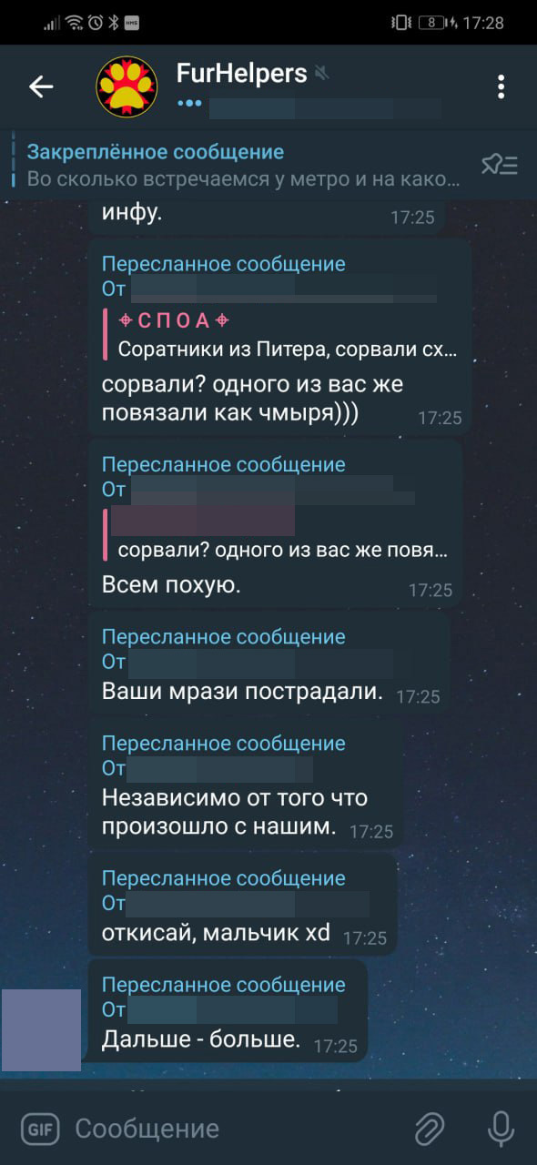 С началом осени члены петербургского сообщества фурри собираются переносить сходки из парков в антикафе. Чтобы защитить их, дружинники решили передать информацию, собранную в чатах «Анти фурри», в Центр «Э». «Это не нормально, что есть сборище людей, которые объединены желанием травить и устраивать насилие, привлекая при этом несовершеннолетних. Прям как АУЕ-шники или гопота какая-то», — аргументирует решение сообщества Антон.