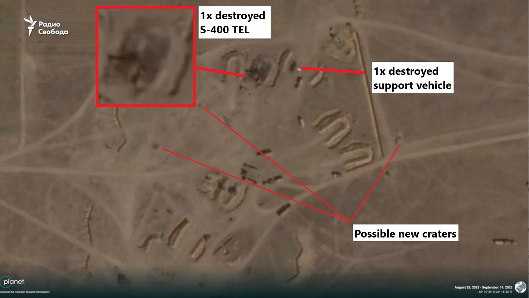 Журналист «Радио Свобода» Марк Крутов публикует спутниковый снимок последствий удара по позициям ПВО в окрестностях поселка Молочное рядом с Евпаторией.