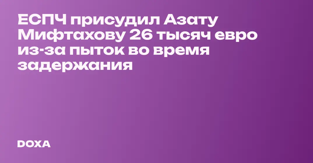 Европейский суд по правам человека (ЕСПЧ) принял решение о взыскании с России компенсации за пытки математика и анархиста Азата Мифтахова. Ему присудили 26 тысяч евро.