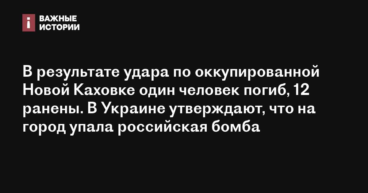 В результате удара по оккупированной Новой Каховке один человек погиб, 12 ранены. В Украине утверждают, что на город упала российская бомба