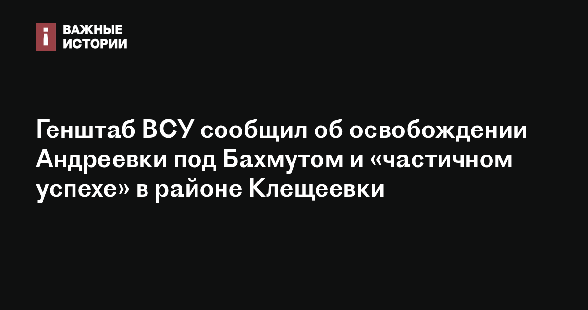 В четверг об освобождении Андреевки рассказала замминистра обороны Украины Анна Маляр. После этого в 3-й ОШБр ВСУ назвали ее утверждение «преждевременным». «В районах Клещеевки и Андреевки идут серьезные и тяжелые бои», — написали украинские военные. Позже Маляр уточнила, что в Андреевке есть «уверенный успех», но пока ведутся бои. «Глава Донецкой народной республики» Денис Пушилин взятие Андреевки опроверг.