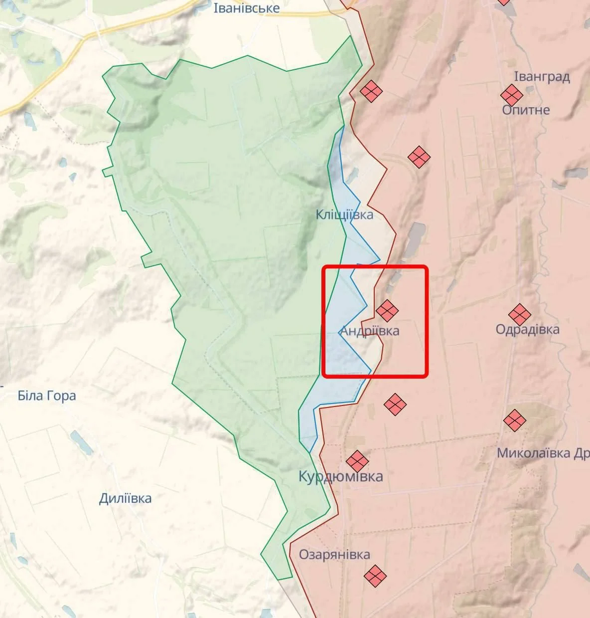 Накануне, 14 сентября, заместитель министра обороны Украины Анна Маляр говорила, что силы обороны Украины после многомесячных боев освободили село Андреевка, однако потом она заявила, что ситуация в этом населенном пункте все еще «очень сложная и изменчивая». Пресс-служба 3-й отдельной штурмовой бригады также накануне отметила, что такие заявления Минобороны были преждевременны.