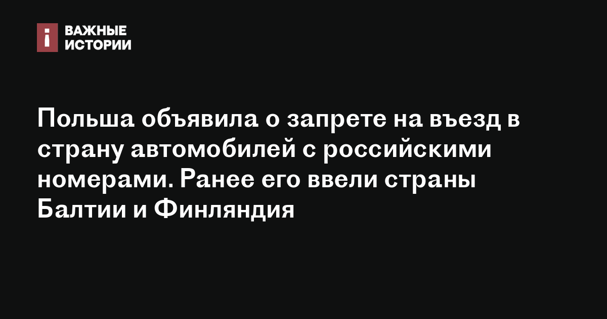 Польша объявила о запрете на въезд в страну автомобилей с российскими номерами. Ранее его ввели страны Балтии и Финляндия