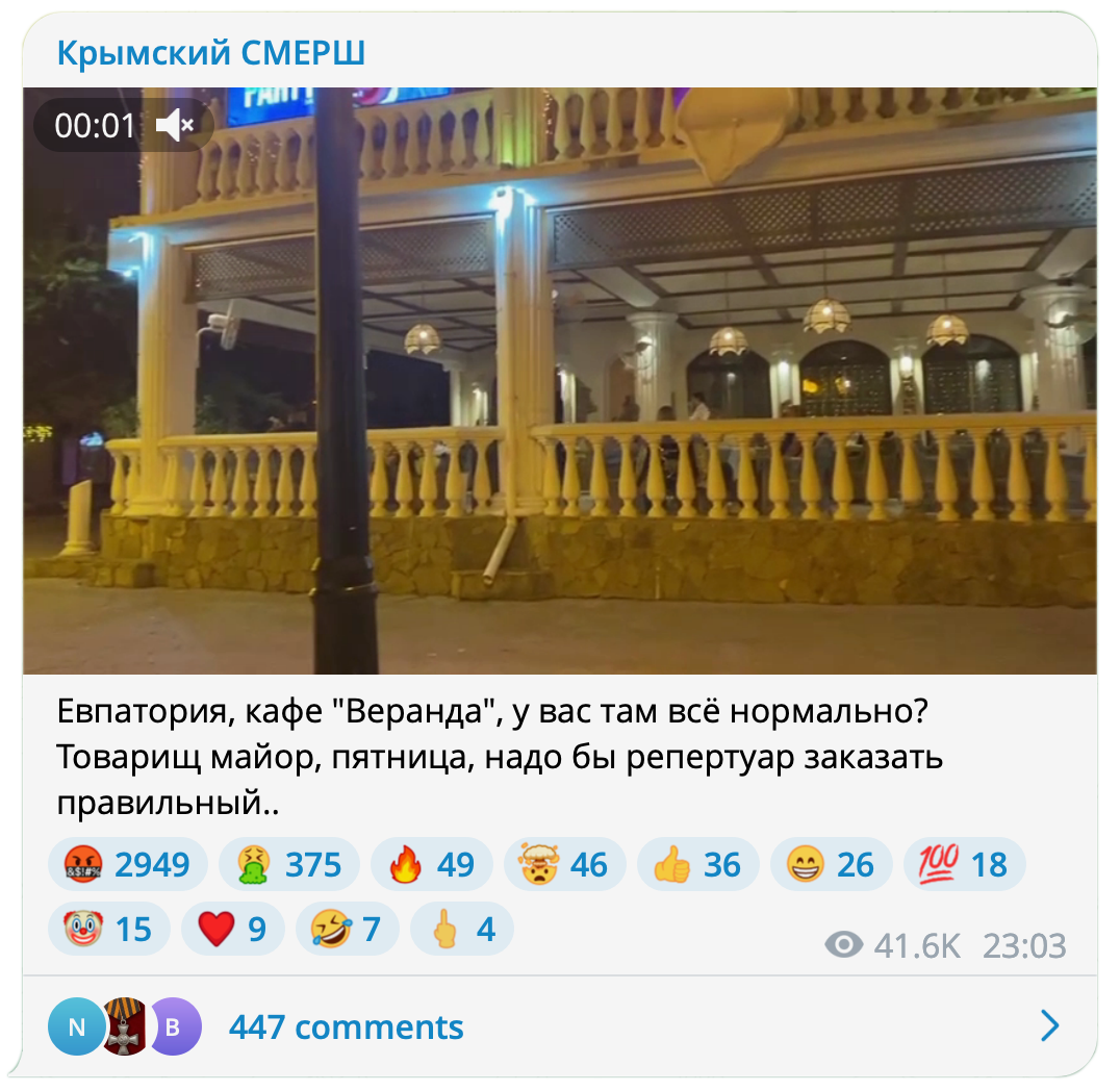 В аннексированном Крыму чаще, чем во многих регионах России, возбуждают административные дела о «дискредитации» российской армии. Под суд на полуострове отдают не только противников войны, но и тех, кто громко слушает украинскую музыку или выкладывает фото в вышиванке. Крымские полицейские часто не ограничиваются протоколами и заставляют местных жителей записывать видеоизвинения перед «гражданами России». Издание «Верстка» рассказывает, как некоторые крымчане помогают силовикам: пишут доносы в полицию и ФСБ, а еще обращаются в специально созданный для этих целей телеграм-канал «Крымский смерш». С любезного разрешения издания «Медуза» публикует этот текст полностью.