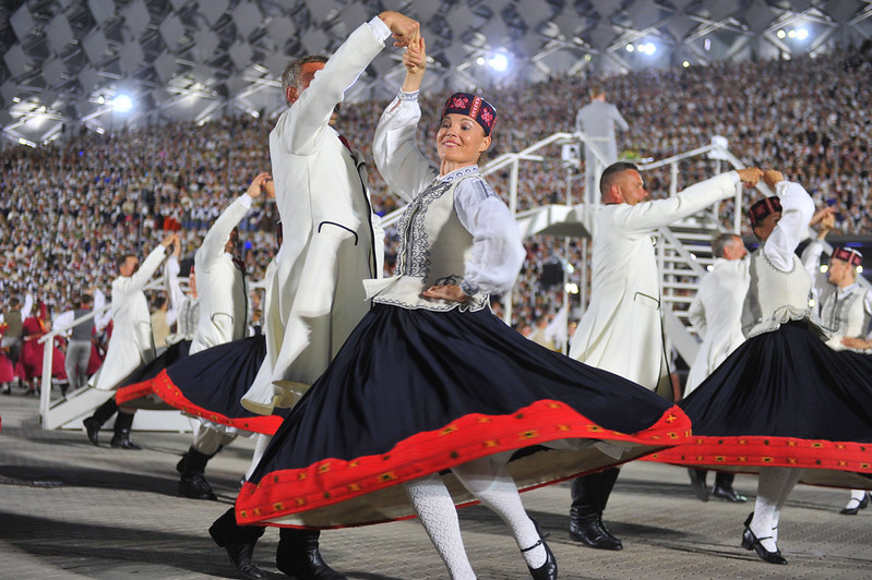Вселатвийский праздник песни и танца является объектом культурного наследия ЮНЕСКО, частью нематериального наследия Объединенных наций, проводится раз в пять лет, а его история насчитывает более 150 лет, то есть связана с формированием национального государства. Праздник не был запрещен при советской власти, но цензурировался. Сейчас в Латвии поддерживается законодательно.