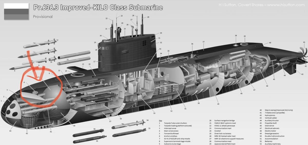 Ранее OSINT-аналитик H I Sutton писал о повреждении торпедного аппарата лодки и публиковал схему вероятных поражений, однако тогда снимки позволяли определить последствия одного попадания. Британская разведка называет полученные подводной лодкой повреждения катастрофическими. Это одна из четырех подлодок Черноморского флота, являющихся носителями крылатых ракет «Калибр».