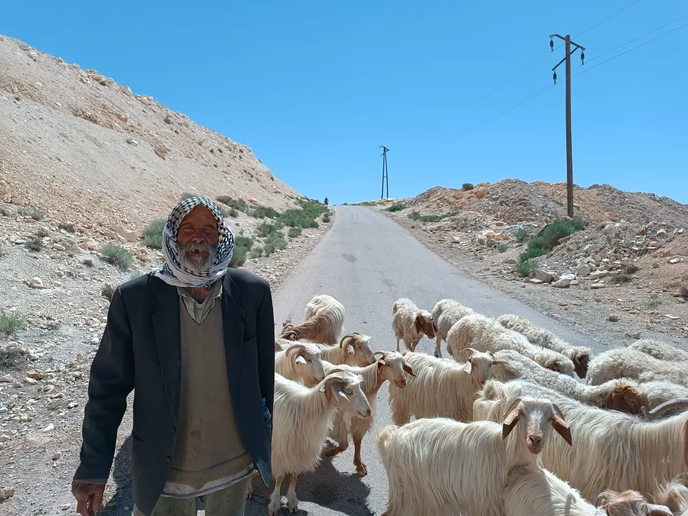 — Из интересных вещей могу вспомнить встречу с пастухом Нажибом, не совсем забавную. Он одинокий человек, людского общества чурается, почти полностью из культуры изъят, живет со своими овцами, общается только с сестрой Розой (ее мы тоже записали) и двумя-тремя друзьями из деревни. Он рассказывал страшные вещи о войне, о зверствах и со стороны исламских повстанцев, Джебхат ан-Нусра 6, и со стороны правительственных войск. Я далеко не всё уловил на слух, мы будем работать с записью. (Говор Маалулы я знаю еще гораздо слабее, чем туройо, но совершенствуюсь, естественно.) В любом случае я понял, что этот человек глубоко травмирован боевыми действиями и скептически относится ко всем сторонам конфликта. Человек он необычный. Когда мы познакомились («Привет!» — «Привет!»), я спросил: «Можно тебя сфотографировать?» — «Можно». Я сделал снимок, он потом стал спрашивать меня при встречах в горах: «Anik ṣūrča?» — «Где фотография?». Дескать, хочется увидеть свой портрет. Мы распечатали фото в Дамаске, подарили ему. Так Нажиб меня запомнил и вступил со мной в контакт. Когда я вернулся этим летом, общий друг сказал ему, что «русский профессор» снова приехал, хочет поговорить. Мы пришли в его дом, наполненный козами, записали полтора часа беседы. Нужно отметить, что язык Нажиба очень особенный: он, судя по всему, никогда нигде не учился на арабском. Родился он в 1946 году и сейчас всё еще выглядит неплохо.