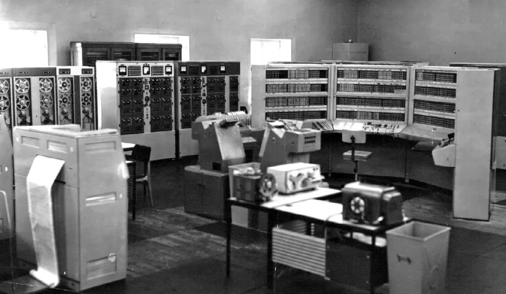 ЭВМ занимала половину комнаты, на ней горели мириады белых и красных лампочек, перфоратор урчал, пробивая дырочки на длинной ленте, пишущая машинка печатала текст (этакий мамонт с мозгом мыши). Фантастика!