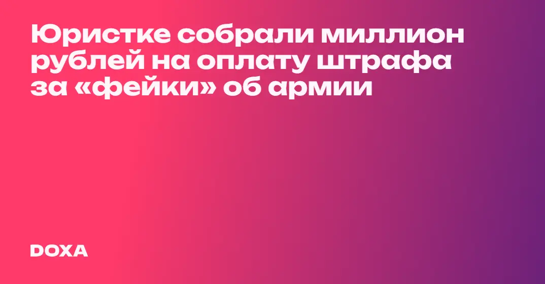 Юристке собрали миллион рублей на оплату штрафа за «фейки» об армии
