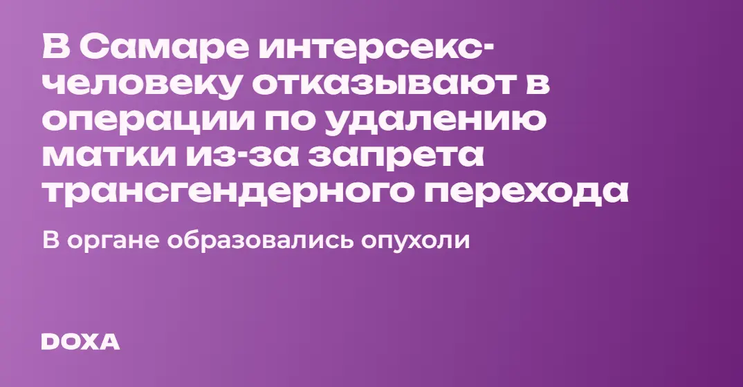 В Самаре интерсекс-человеку отказывают в операции по удалению матки из-за запрета трансгендерного перехода. В органе образовались опухоли