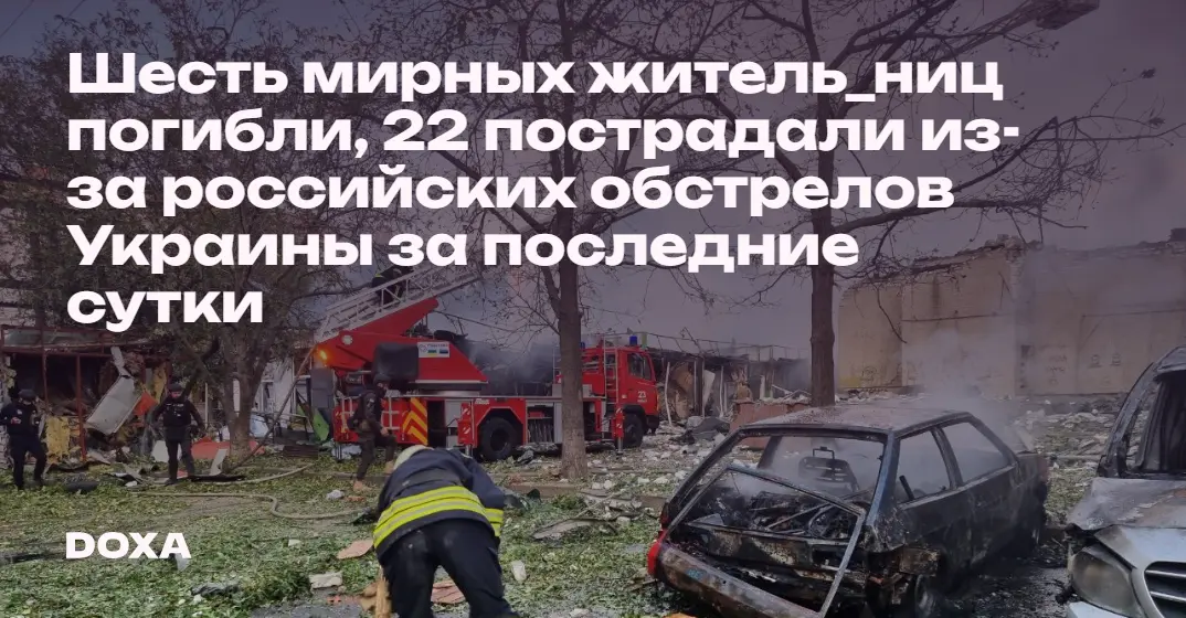 Шесть мирных житель_ниц погибли, 22 пострадали из-за российских обстрелов Украины за последние сутки