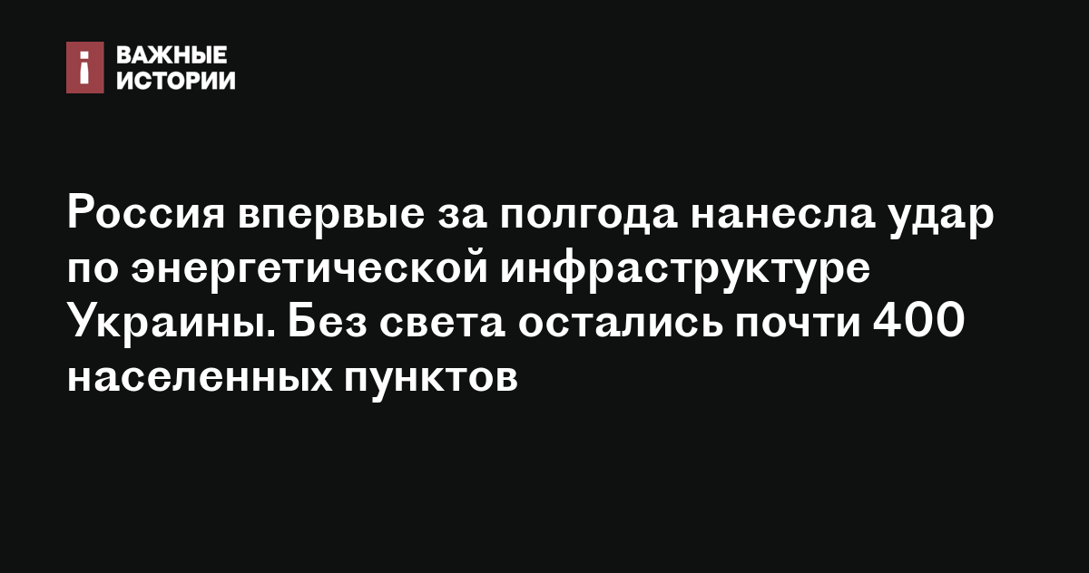 Россия впервые за полгода нанесла удар по энергетической инфраструктуре Украины. Без света остались почти 400 населенных пунктов
