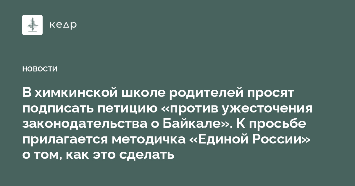 В химкинской школе родителей просят подписать петицию «против ужесточения законодательства о Байкале». К просьбе прилагается методичка «Единой России» о том, как это сделать