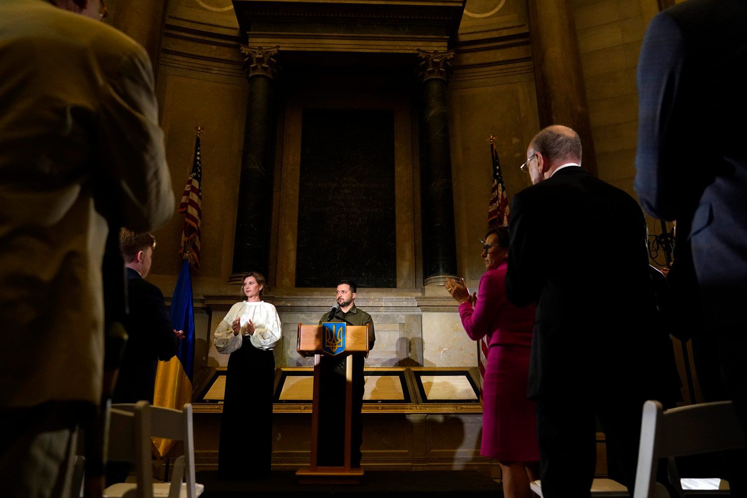 Следующим пунктом поездки Зеленского стал Вашингтон, где состоялись встречи украинского лидера с президентом США Джо Байденом, лидерами палат и партий Конгресса, руководством Пентагона, американским бизнесом и журналистами.