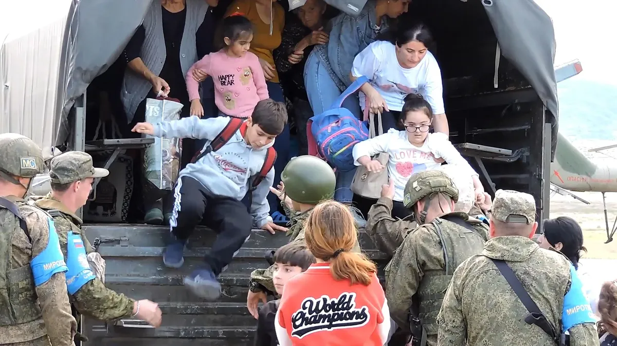 Эвакуация мирного населения Нагорного Карабаха российским миротворческим контингентом. Фото: Пресс-служба Минобороны РФ / ТАСС