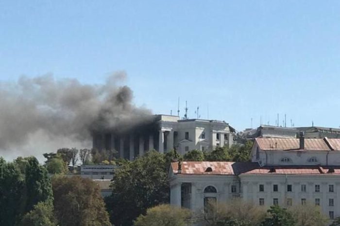 В здании после удара начался пожар. Штаб флота получил повреждения. Судя по фотографиям, после удара в здании разрушена крыша и как минимум один верхний этаж.