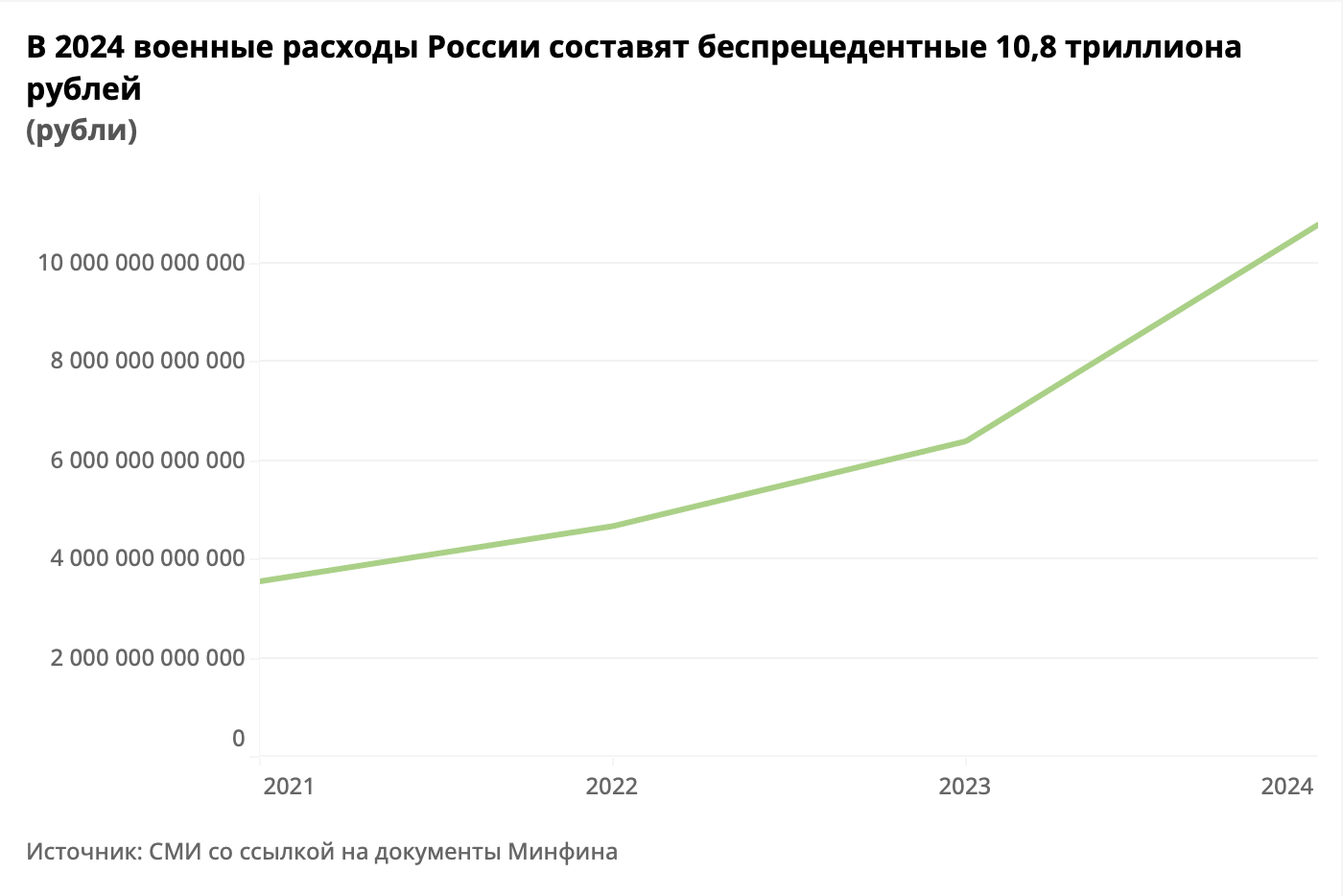 Россия увеличит военные расходы почти на 70 %, до 10,8 триллиона
