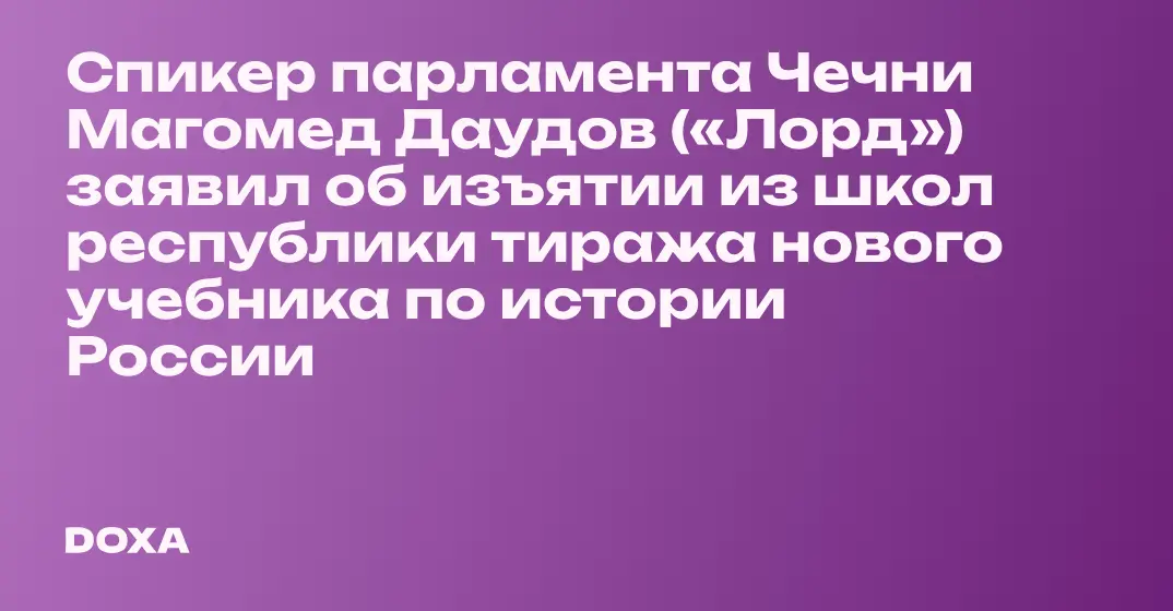 Спикер Парламента Чеченской республики Магомед Даудов («Лорд») сообщил в своем телеграм-канале, что новый учебник по истории России для 10–11 классов был изъят из школ республики из-за фрагмента о депортации народов в годы Второй мировой войны из школ республики. Позже, как заметила «Медуза», Даудов удалил из поста абзац про изъятие тиража.