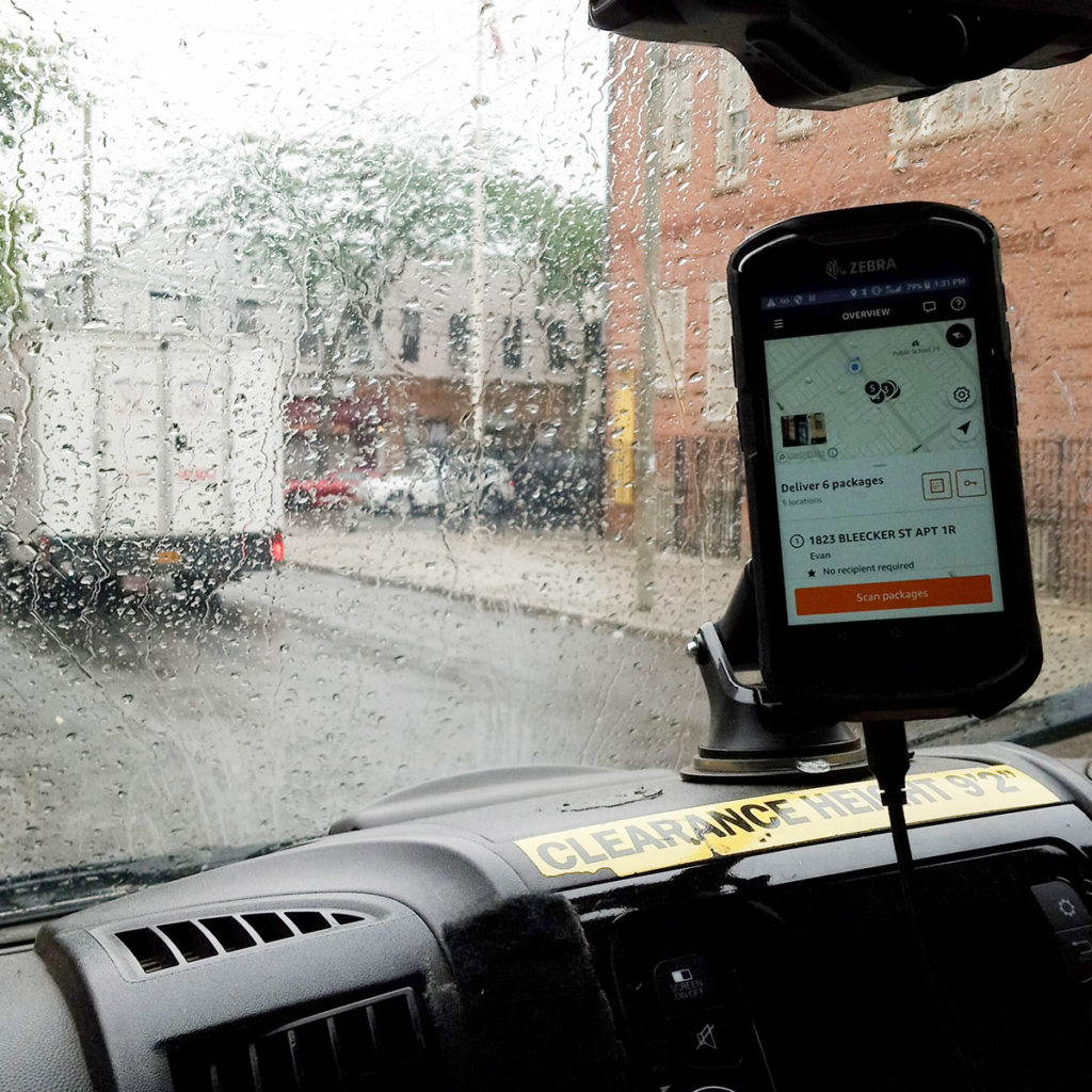 Еду на rescue. Это когда ты развез свои посылки раньше, тебя могут отправить на помощь другим водителям. Меня послали к пожилому колумбийцу, который здесь первый день, а до этого работал дальнобойщиком.