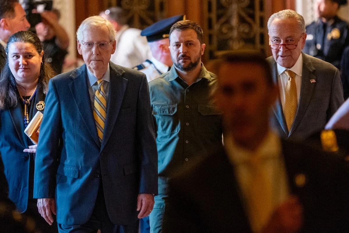 В декабре прошлого года Зеленский в качестве почетного гостя выступил с речью перед полным составом обеих палат Конгресса. В этот раз он тоже встретился с американскими законодателями, но за закрытыми дверями и раздельно — с лидерами палаты представителей и примерно семьюдесятью сенаторами. Здешние обозреватели назвали поездку «важнейшей в политической карьере» украинского президента. Речь идет о дальнейшем предоставлении американской военной и финансовой помощи. Но с этим возникла проблема.